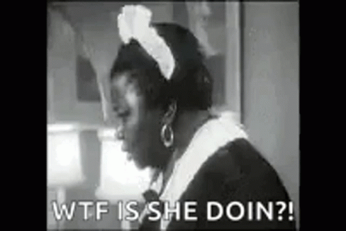 Paglalarawan ng Content: a black and white photo of a maid saying wtf is she doin .