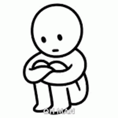 Paglalarawan ng Content: a black and white drawing of a person sitting with their arms crossed and a sad face .