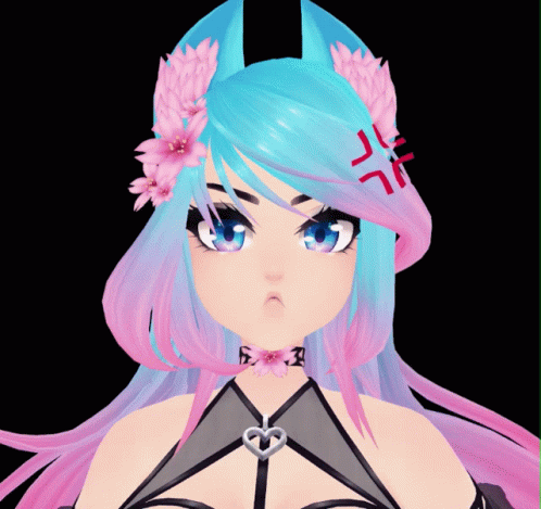 Paglalarawan ng Content: a girl with blue hair and pink flowers in her hair