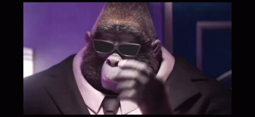 Paglalarawan ng Content: a gorilla wearing sunglasses and a suit and tie is talking on a cell phone .
