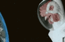 Paglalarawan ng Content: an astronaut with a chicken in his helmet is flying in space
