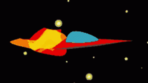 Paglalarawan ng Content: a pixel art drawing of a space ship flying through the space