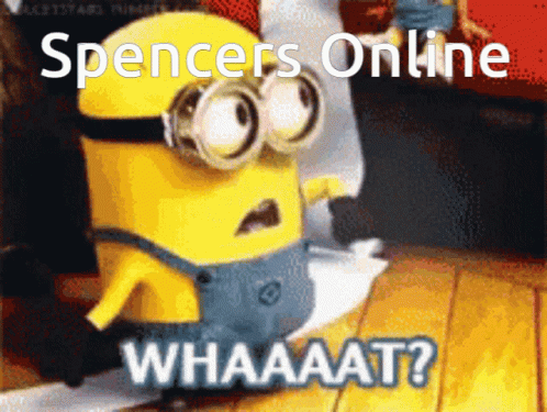 Paglalarawan ng Content: a picture of a minion says spencers online whaaat