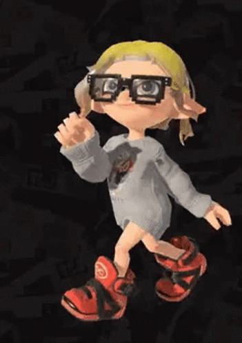 Paglalarawan ng Content: a cartoon squid wearing glasses and a sweater is walking on a black background .