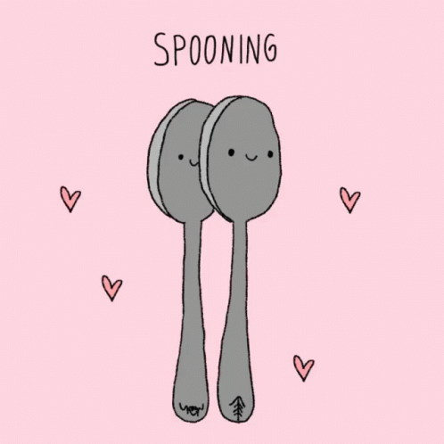 Paglalarawan ng Content: a drawing of two spoons with faces and the words " spooning "