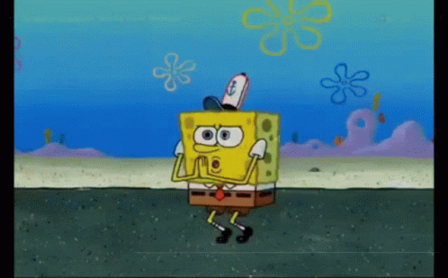 Paglalarawan ng Content: a cartoon of spongebob squarepants dancing on the beach with a flower in the background