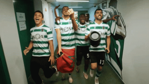 Paglalarawan ng Content: a group of soccer players are walking down a hallway with nos on their jerseys