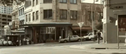 Paglalarawan ng Content: a corner of a city street with cars parked in front of a building that says burger king