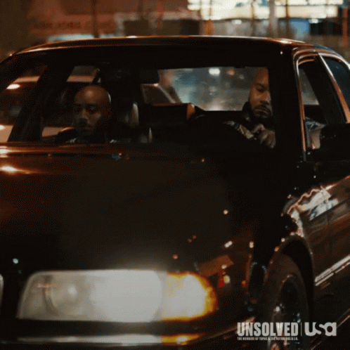 Paglalarawan ng Content: a man is driving a car that says unsolved usa on the side
