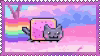 Paglalarawan ng Content: a pixel art of a cat eating a rainbow colored toaster pastries .