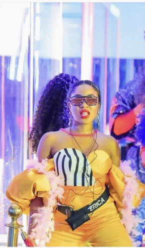 Paglalarawan ng Content: a woman wearing a zebra print top and sunglasses is standing in front of a barrier .