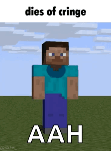 Paglalarawan ng Content: a picture of a minecraft character with the words dies of cringe aah on it