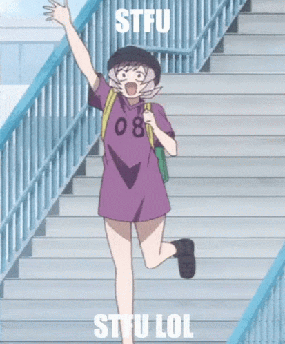 Paglalarawan ng Content: a girl in a purple shirt with the number 08 on it is running down the stairs