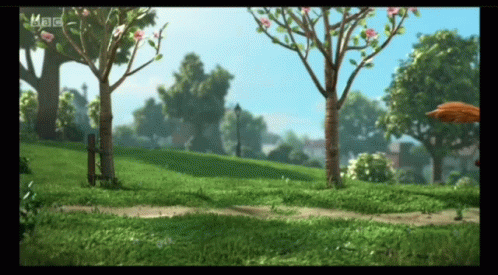 Paglalarawan ng Content: a bbc screen shows a cartoon scene with trees