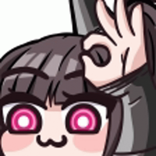 Paglalarawan ng Content: a cartoon girl with pink eyes is giving an ok sign .