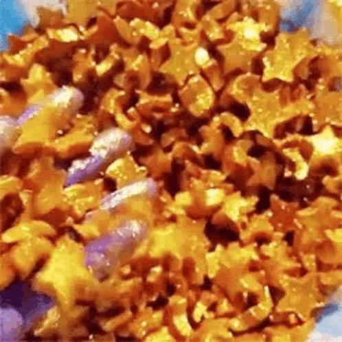 Paglalarawan ng Content: a pile of gold stars sitting on top of a blue table .