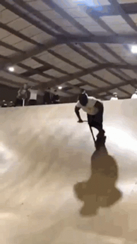 Paglalarawan ng Content: a man with a cane is riding a skateboard on a ramp .
