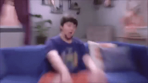 Paglalarawan ng Content: a blurry image of a man sitting on a blue couch