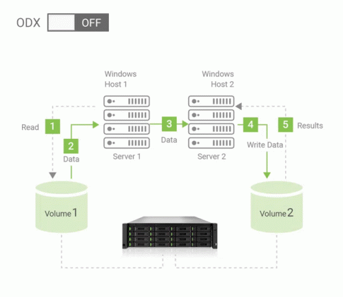 Paglalarawan ng Content: a diagram showing the process of offload read and offload write with windows host 1 and windows host 2