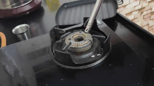 Paglalarawan ng Content: a close up of a gas burner on a black stove