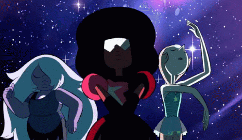 Paglalarawan ng Content: three cartoon characters are dancing in front of a starry background