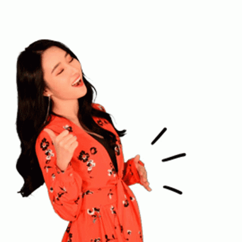 Paglalarawan ng Content: a woman in an orange dress giving a thumbs up