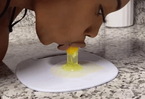 Paglalarawan ng Content: a person is eating a yellow liquid from a white plate