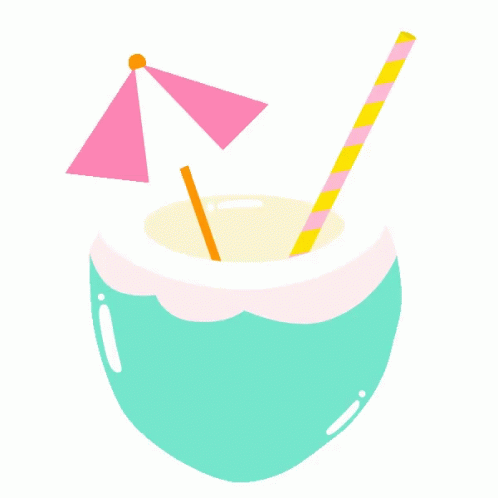 Paglalarawan ng Content: an illustration of a coconut with a pink umbrella and straw