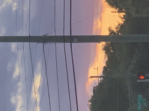Paglalarawan ng Content: a sunset is reflected in the telephone poles and trees