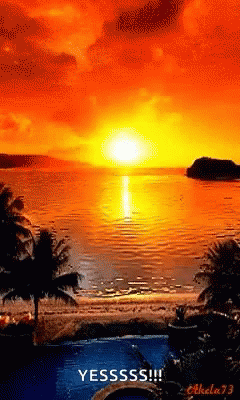 Paglalarawan ng Content: a sunset over a body of water with the words yesssss