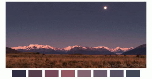 Paglalarawan ng Content: a picture of a sunset over a mountain range with a color palette below it