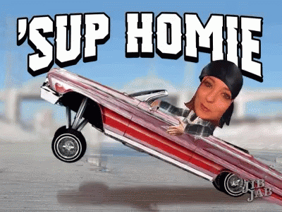 Paglalarawan ng Content: a picture of a woman in a lowrider car with the caption " sup homie "