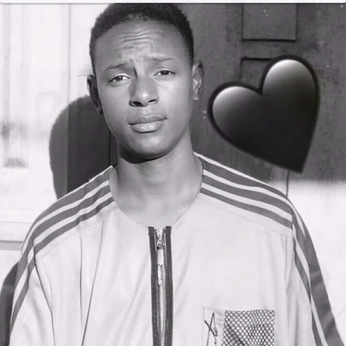 Paglalarawan ng Content: a black and white photo of a young man with a heart on the background