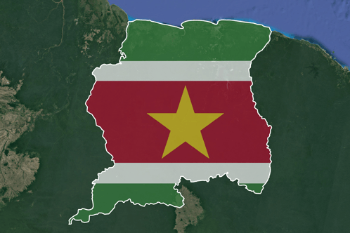 Paglalarawan ng Content: a map of suriname with a yellow star in the center