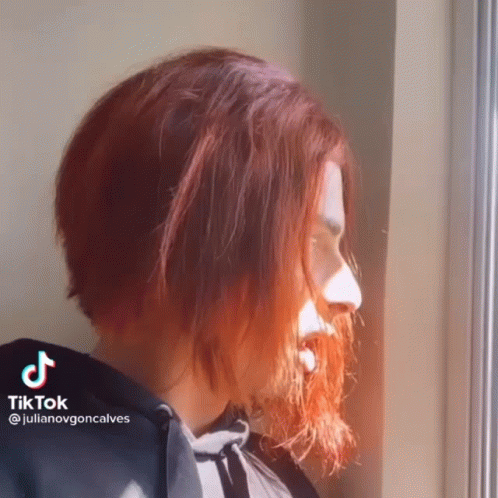 Paglalarawan ng Content: a woman with red hair and a beard is looking out a window .
