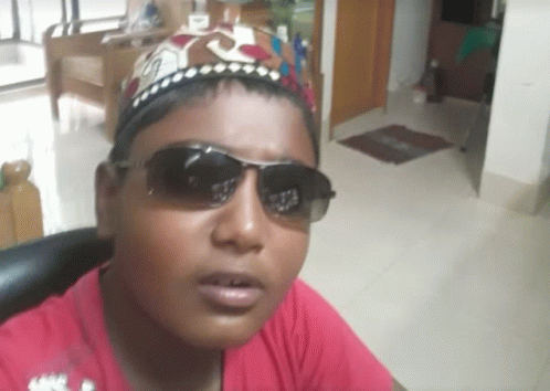 Paglalarawan ng Content: a young boy wearing sunglasses and a crown