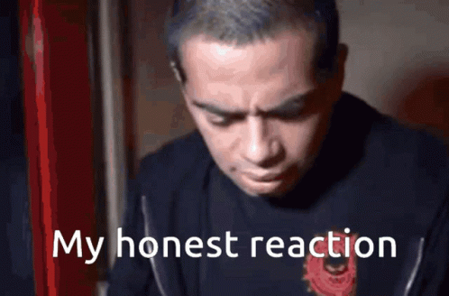 Paglalarawan ng Content: a man in a black shirt is crying with the words my honest reaction below him