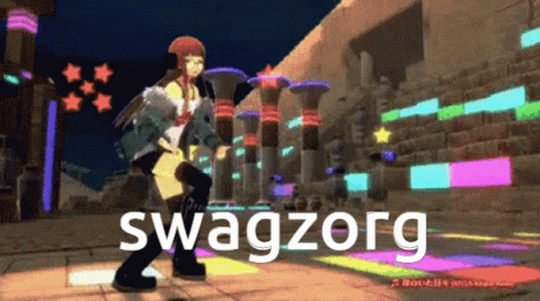 Paglalarawan ng Content: a girl is dancing in a video game and the word swagzorg is visible