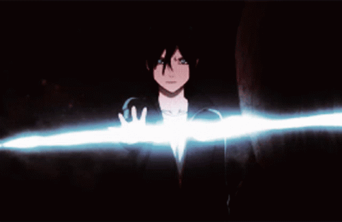 Paglalarawan ng Content: a person holding a sword with a blue light behind them