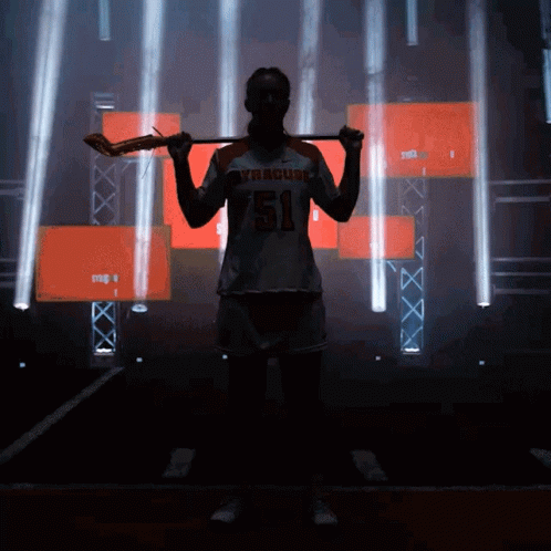 Paglalarawan ng Content: a woman holding a lacrosse stick with the number 51 on her jersey