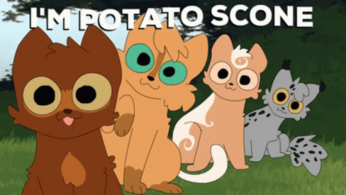 Paglalarawan ng Content: a cartoon of four cats with the words i 'm potato scone written above them