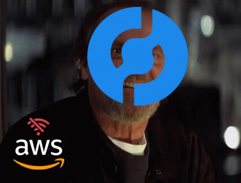 Paglalarawan ng Content: a man with a beard and a blue circle on his face is next to an aws logo
