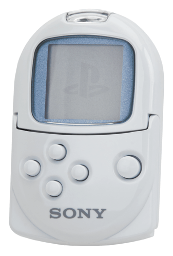 Paglalarawan ng Content: a white sony device with buttons and a blue screen