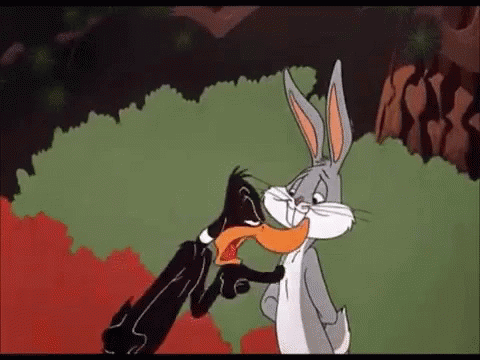 Paglalarawan ng Content: bugs bunny and daffy duck are standing next to each other in a cartoon scene .
