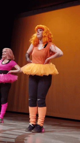 Paglalarawan ng Content: a woman with orange hair is dancing with another woman