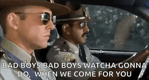 Paglalarawan ng Content: two police officers are driving a car and one of them is talking to the other .