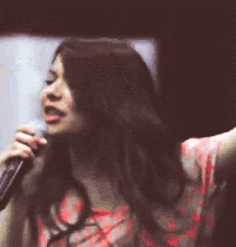 Paglalarawan ng Content: a woman is singing into a microphone with her hand outstretched
