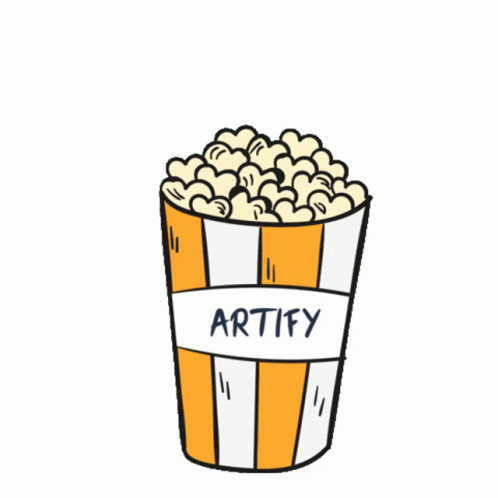 Paglalarawan ng Content: a cartoon drawing of a striped bucket of popcorn with the word artify on it .