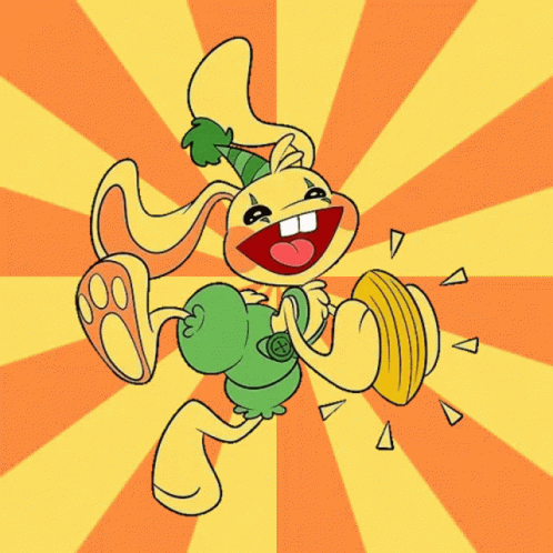 Paglalarawan ng Content: a cartoon of a rabbit wearing a party hat and holding a coin