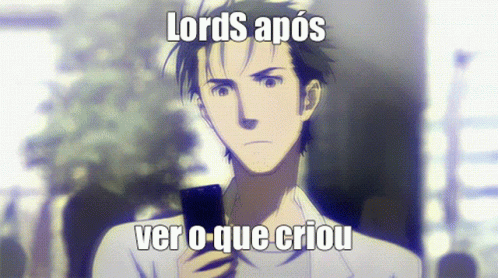 Paglalarawan ng Content: a man holding a cell phone with the words lords após ver o que criou